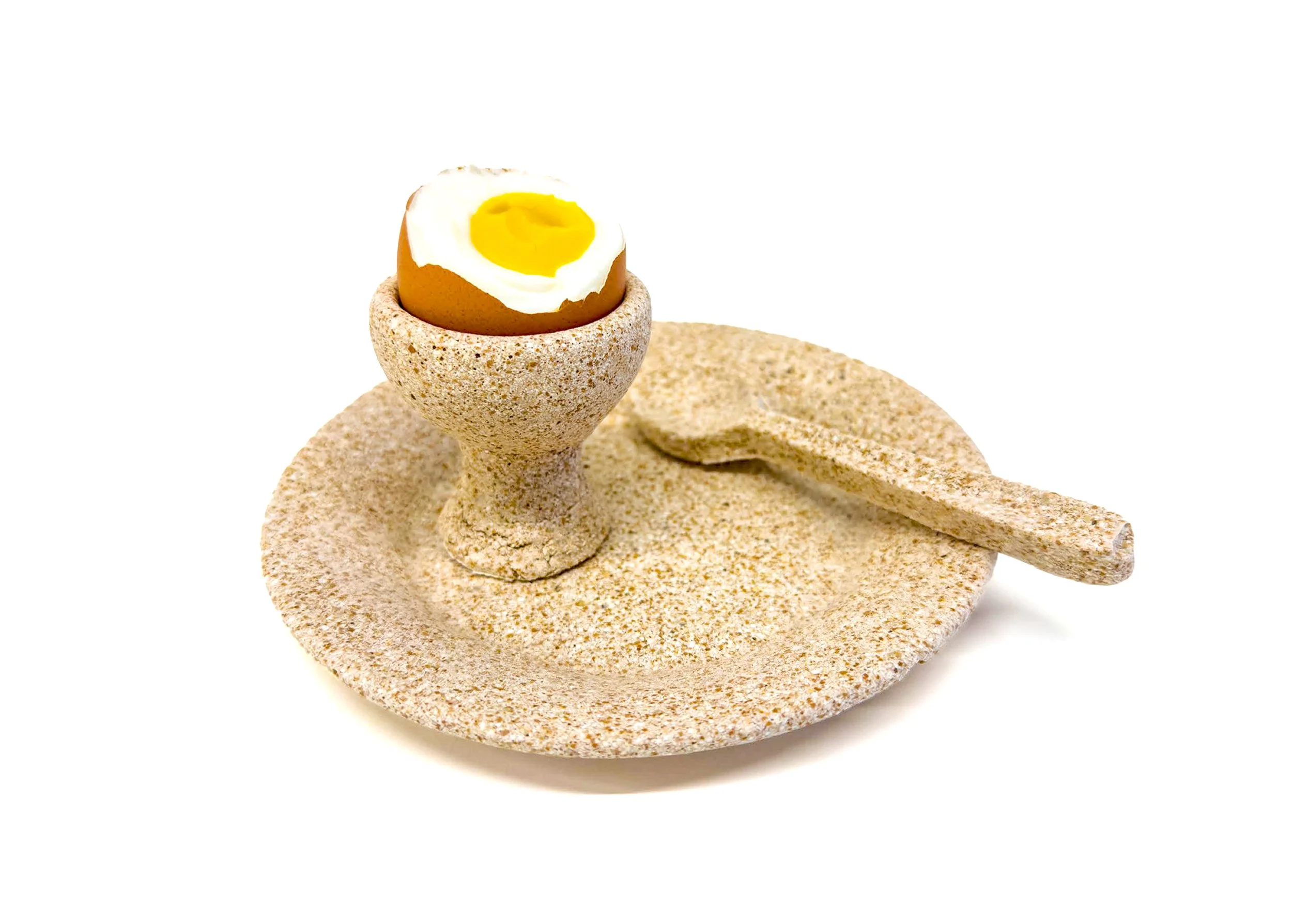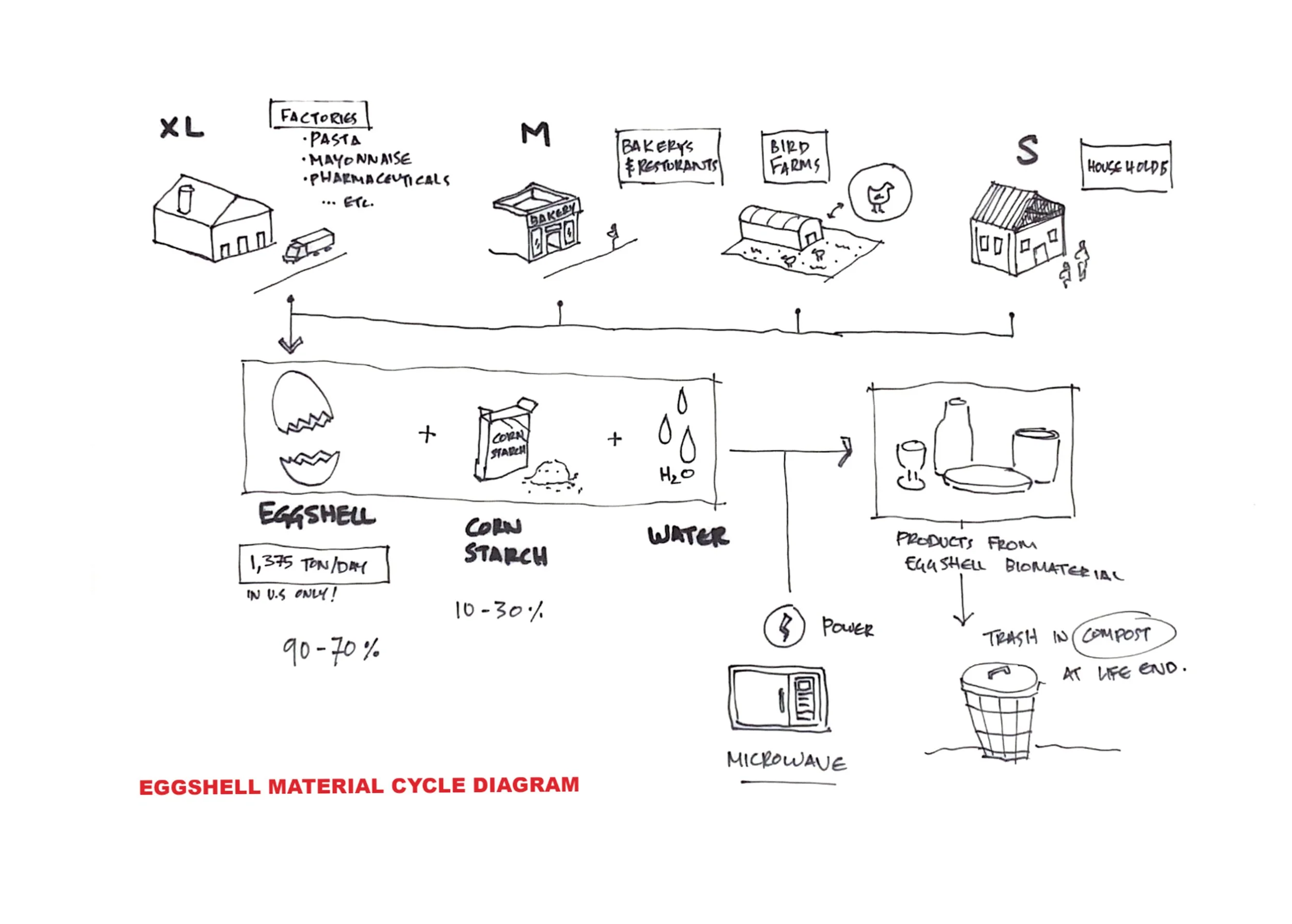 Eggshell Object repositions eggshell waste as a valuable raw material for food-related product design. By harnessing the latent potential of eggshells, primarily composed of calcium carbonate, the project transforms a typically discarded byproduct into a refined, purpose-driven material. The work challenges the boundary between biological waste and sustainable innovation, extending the lifecycle of this biomaterial while highlighting its environmental benefit as a natural carbon dioxide trap formed within living organisms. Through this process, Eggshell Objects proposes a new narrative for food waste, sustainability, and material agency. It explores how overlooked organic matter can be reimagined into functional forms, advancing circular design practices and encouraging a shift in how we define value in everyday materials.