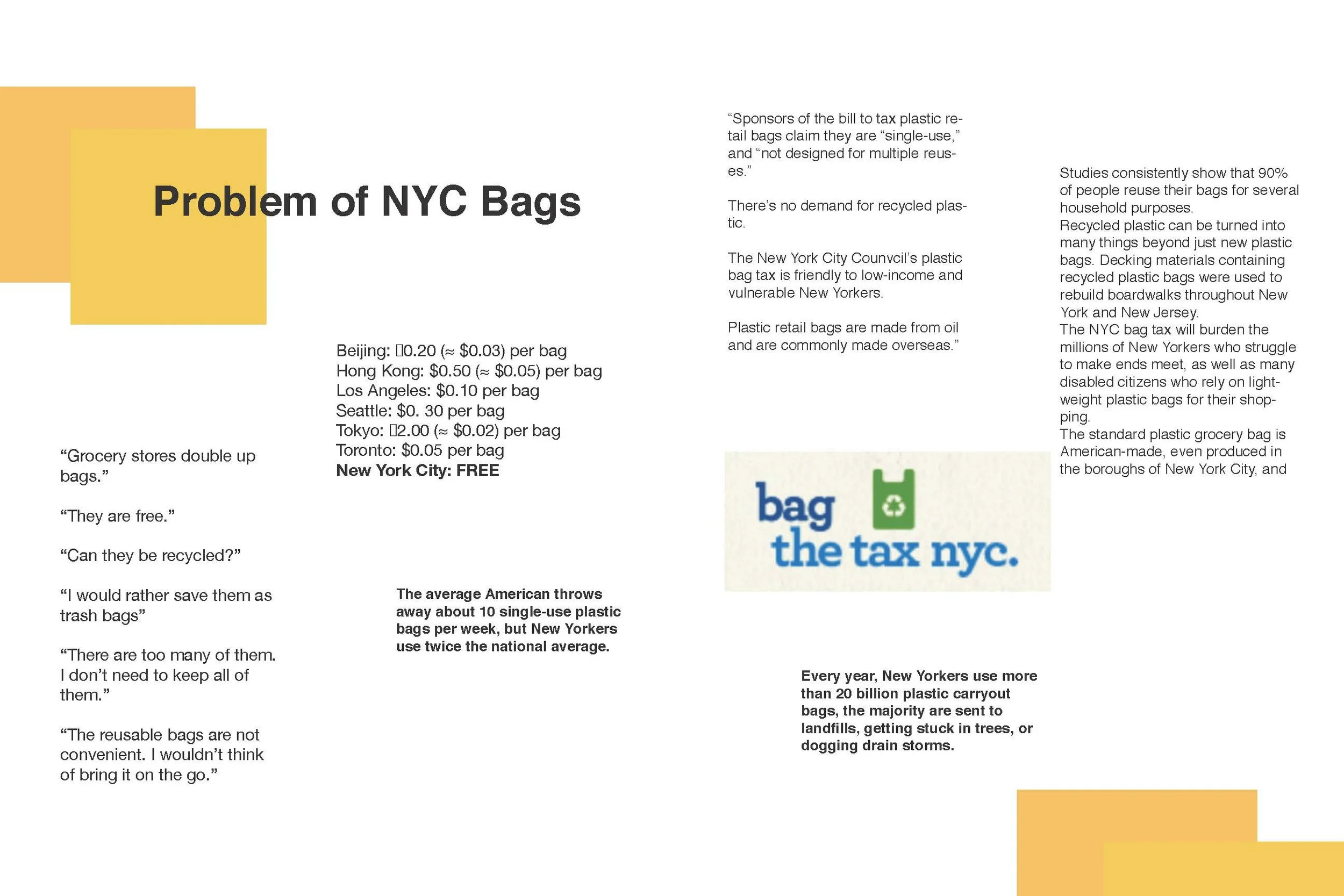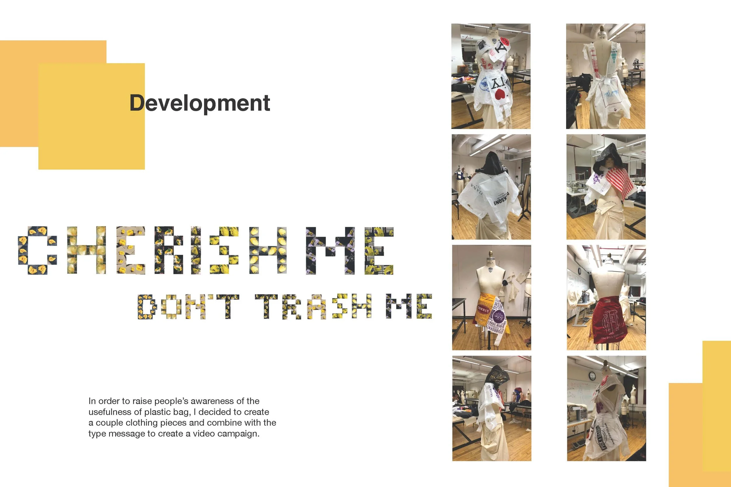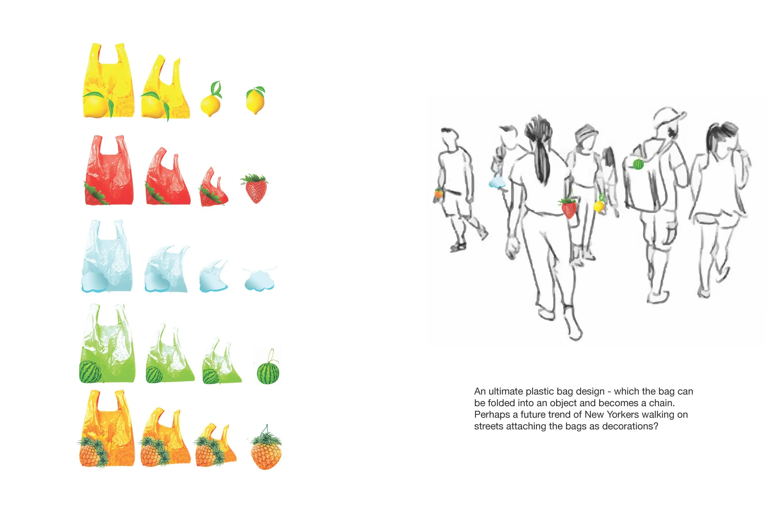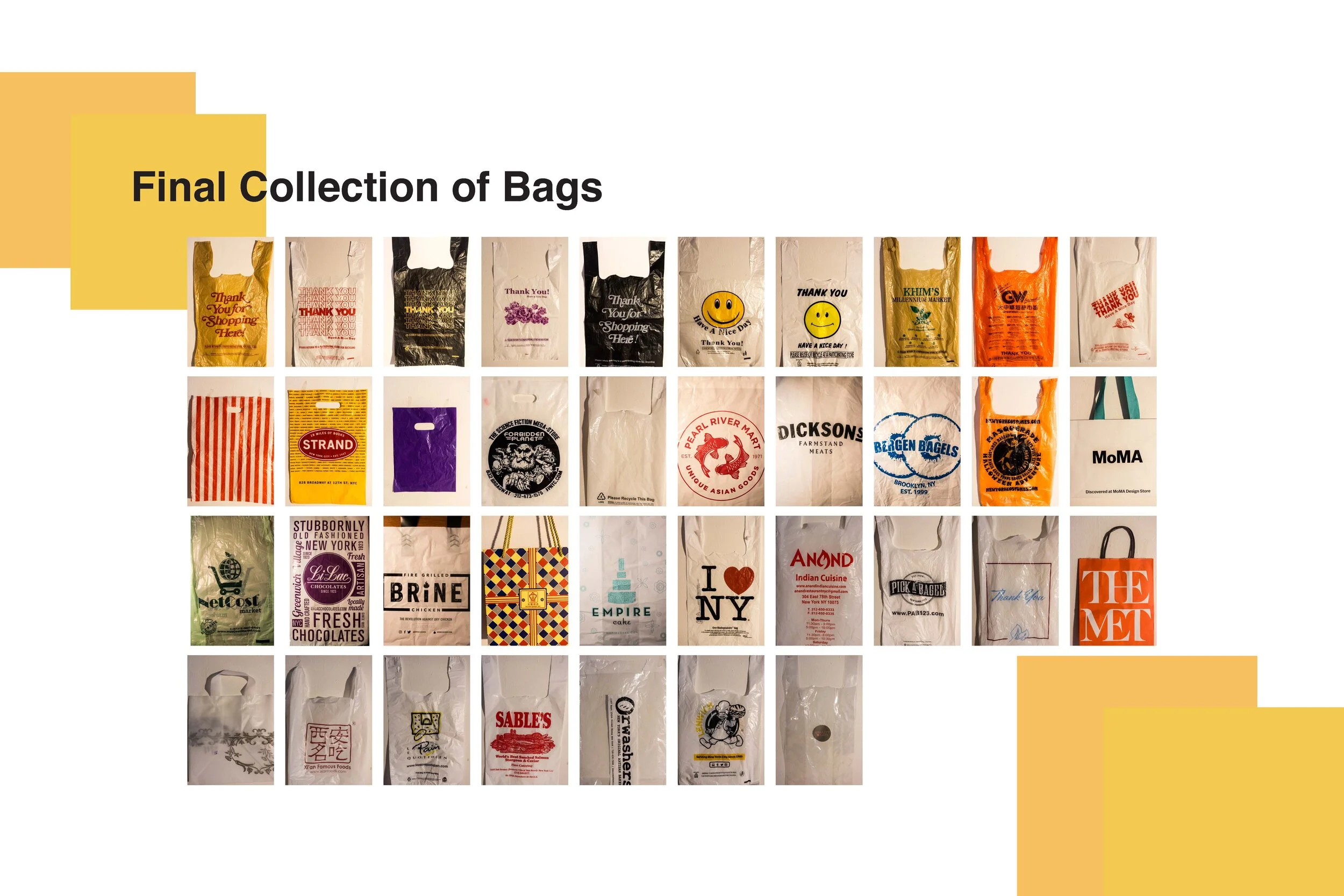 While researching New York City's plastic bag consumption, I discovered that the city has the highest amount of plastic bag waste among the United States. I used the LATCH theory during the initial research phase, then added various approaches to find out what is special about New York's plastic bags. My hope is to raise awareness about plastic waste, specifically in New York City. My final results include a set of fashion outfits made with NYC plastic bags, a set of typography designed with the wasted bag photography, and a proposal for future grocery bag looks.
